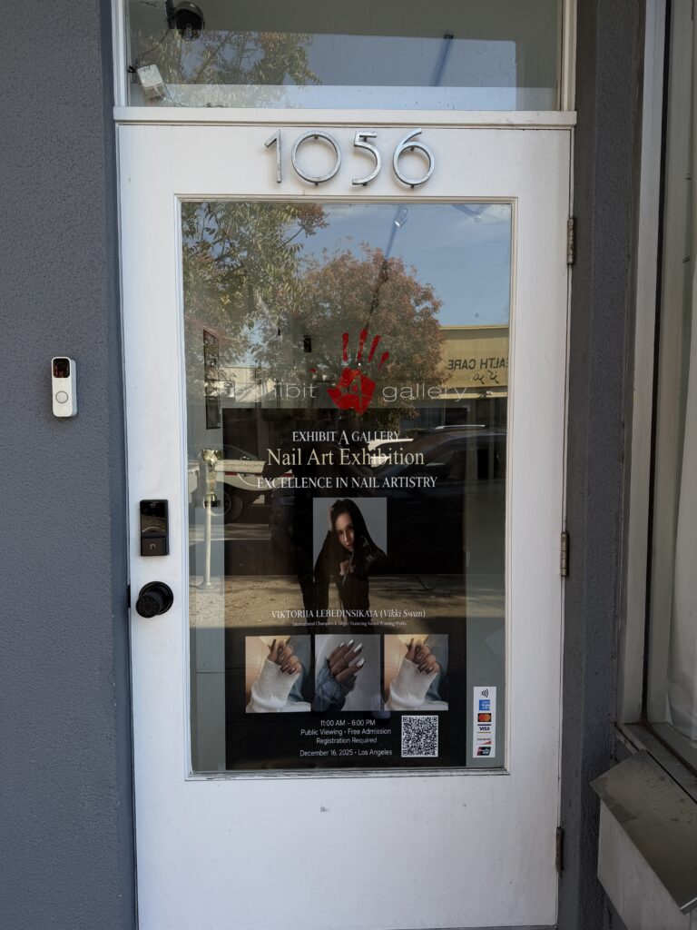 Los Angeles, CA — On December 16, Exhibit A Gallery hosted a solo photo exhibition titled “Excellence in Nail Artistry,” presenting a curated visual overview of competitive nail designs by nail artist and educator Viktoriia Lebedinskaia, professionally known as Vikki Swan.